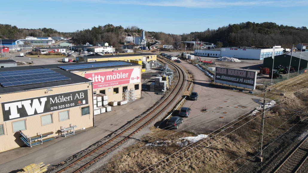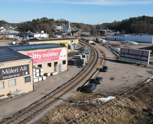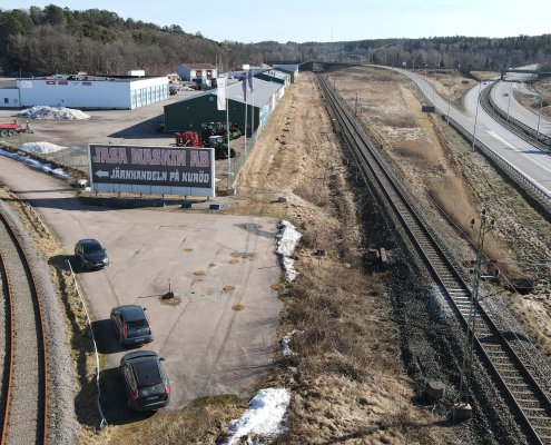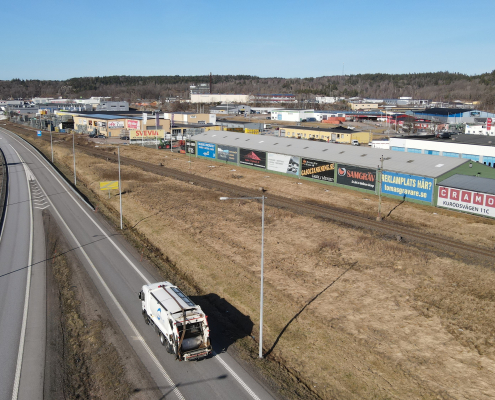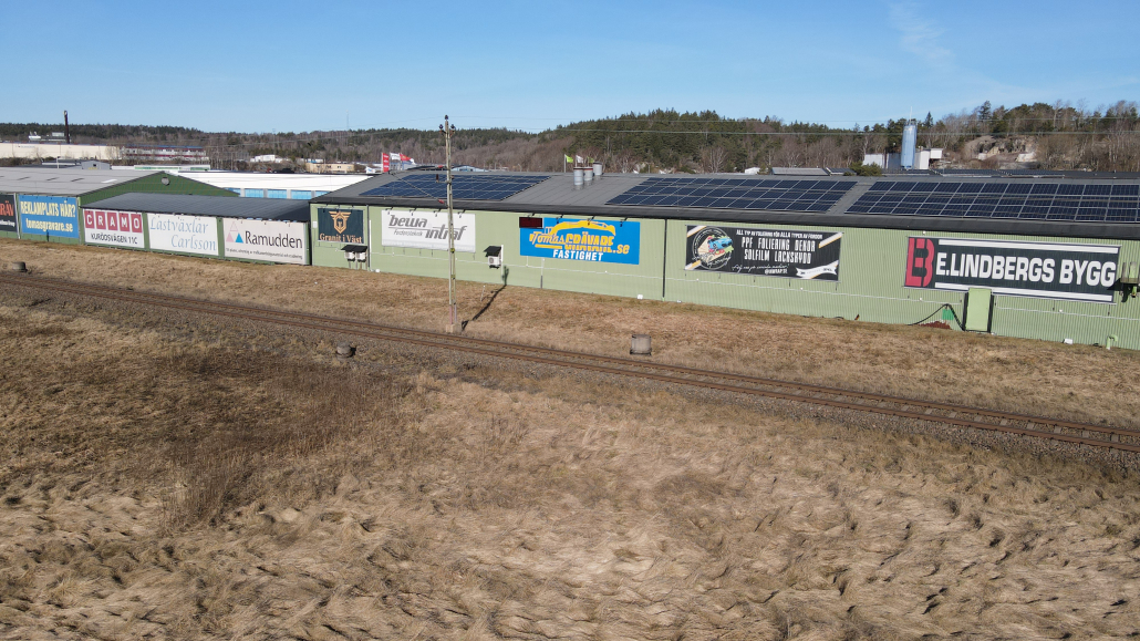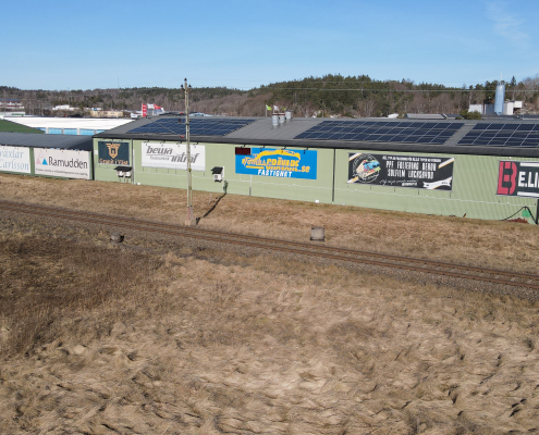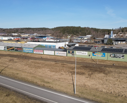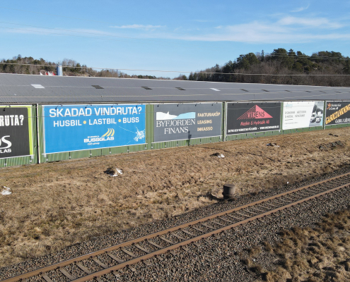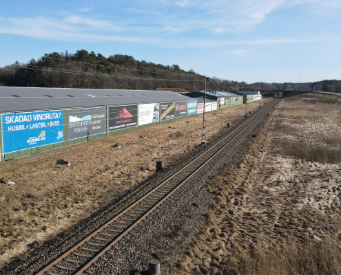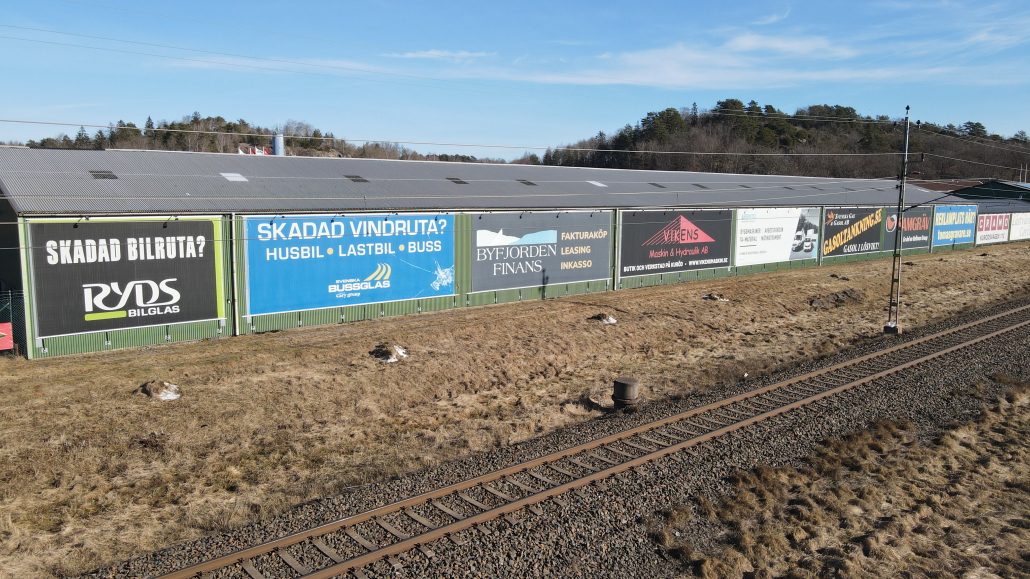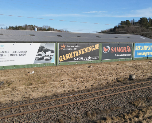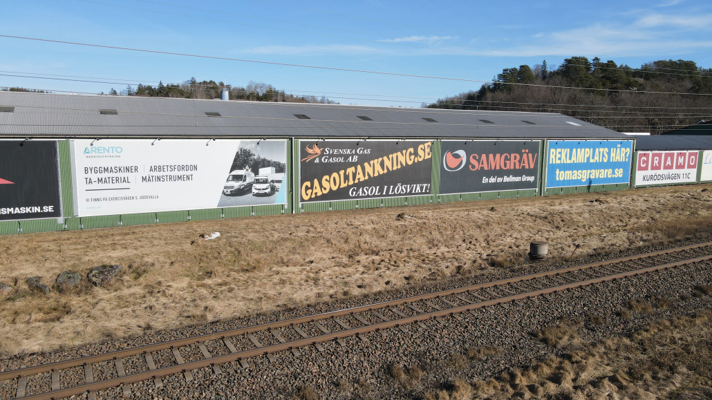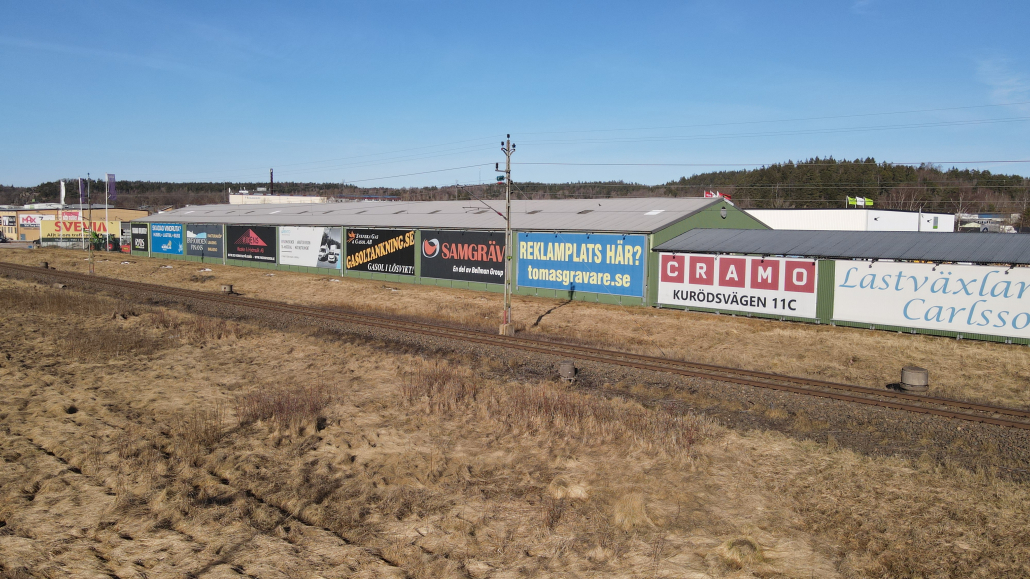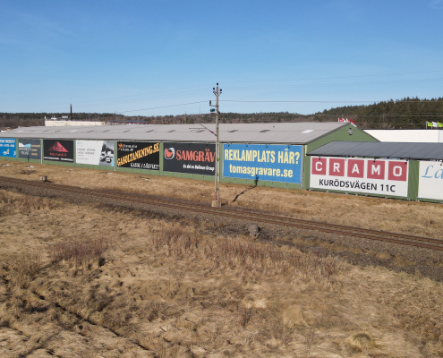 Vi har även en reklamyta på fastigheten vid Kurödsvägen 11, den fastigheten där Cramo är vår hyresgäst. På bilderna syns vår egna vepa.